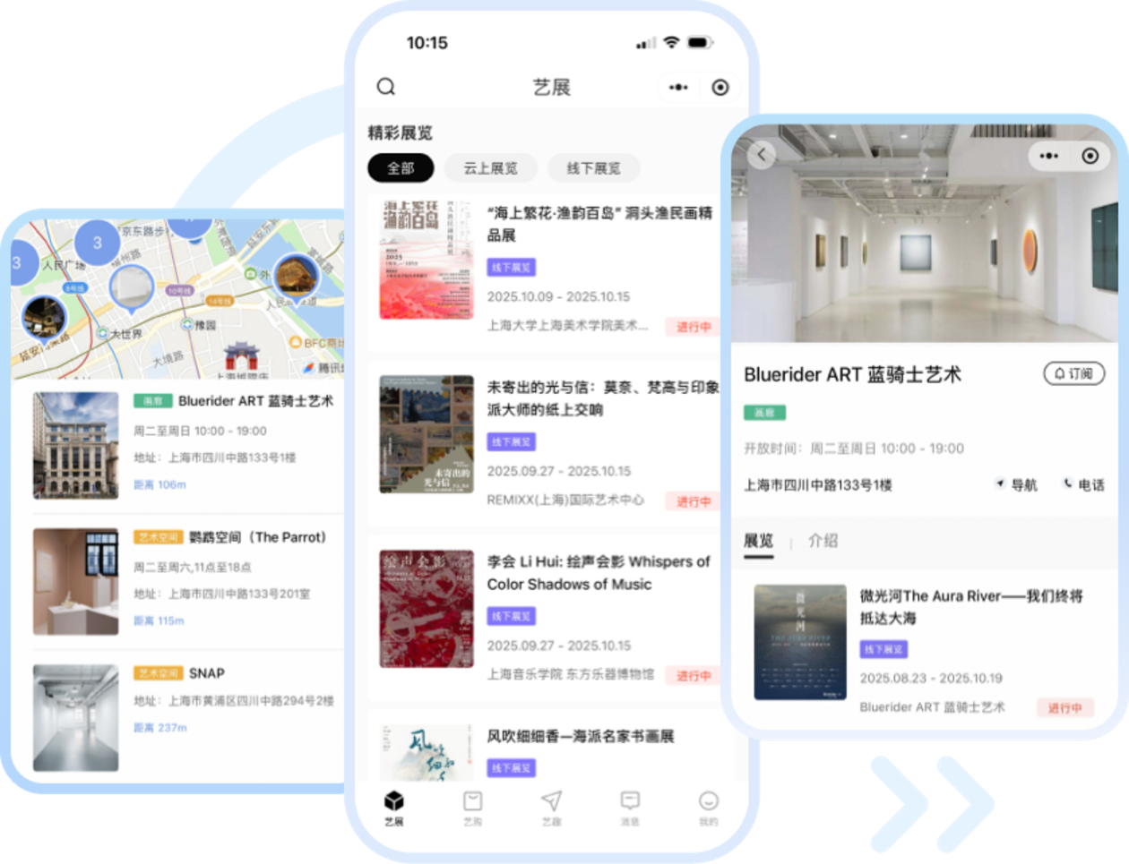 艺术线路串联全城地标,线下导览解密创作故事。未来以智能化推荐,匹配精准观众需求,体验、观展、交流、收藏四位一体,让艺术成为美好生活的重要组成部分。